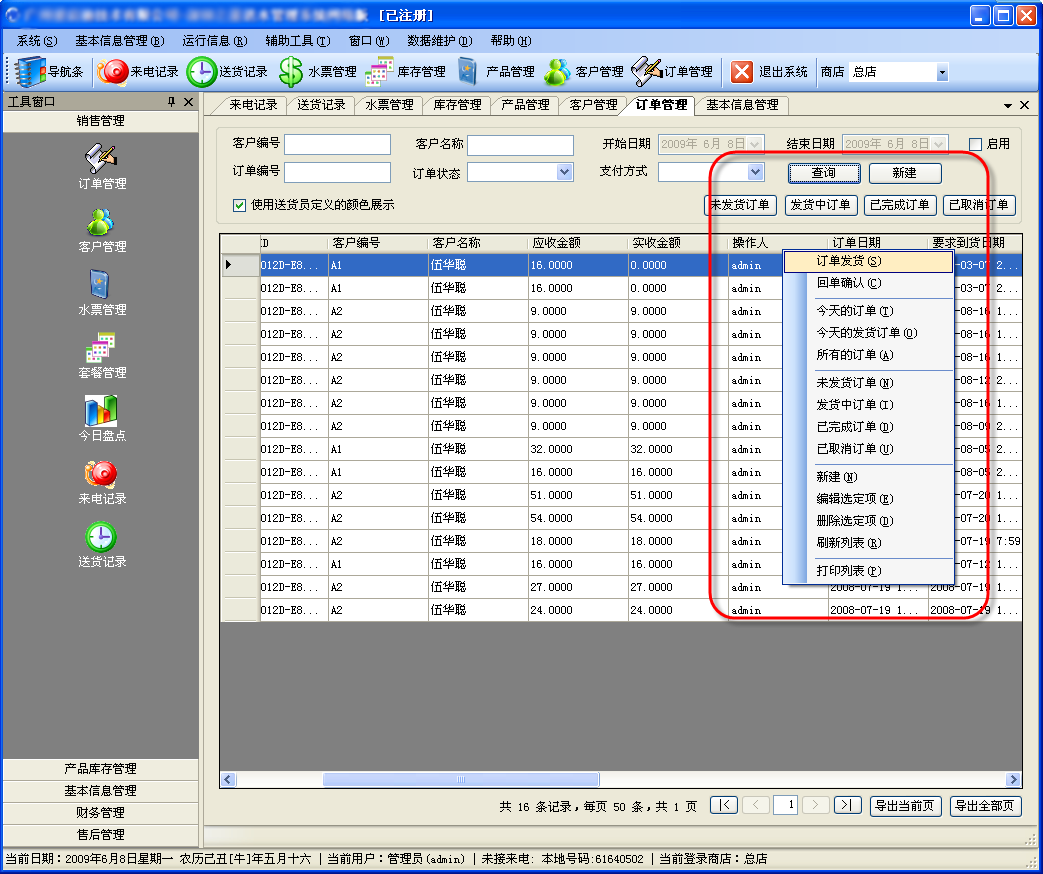軟件主要功能有來電顯示及電話錄音、客戶管理、訂單管理、水票管理、權限管理、送水工管理、庫存管理、財務管理、售后管理、報表打印等眾多實用有效的的功能。